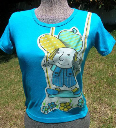 Swinger Tee New cotton turquoise American Apparal tee sports a funky vintage swinger boy. The shirt is a size small and laid flat, measures 15 inches across the chest and 19 inches from shoulder to hem.