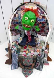 acrylic paint, polyfil, wire armature, various fabric for clothing