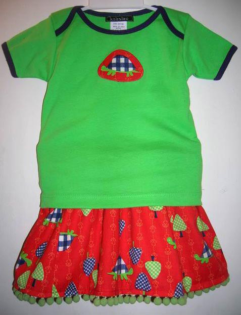turtle and paired with a matching pom pom trimmed skirt. The skirt is composed