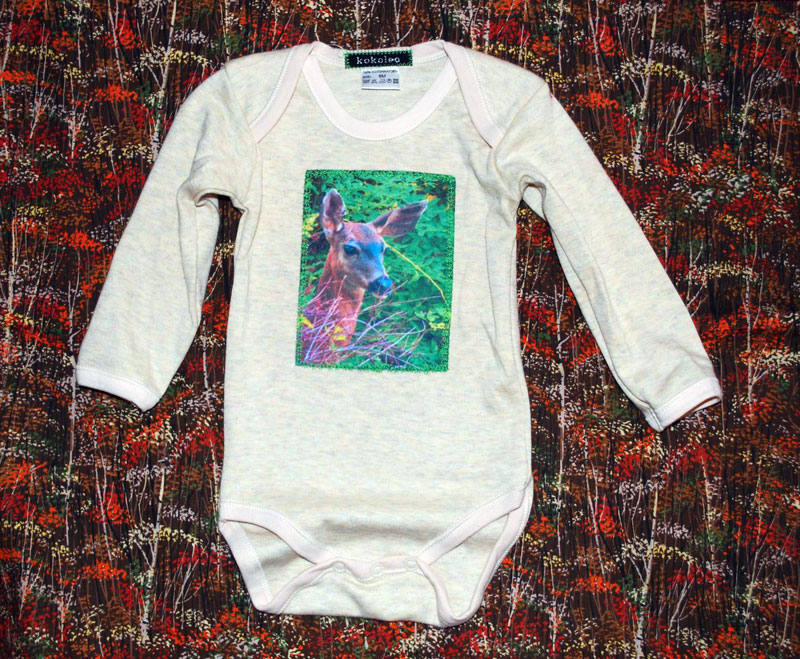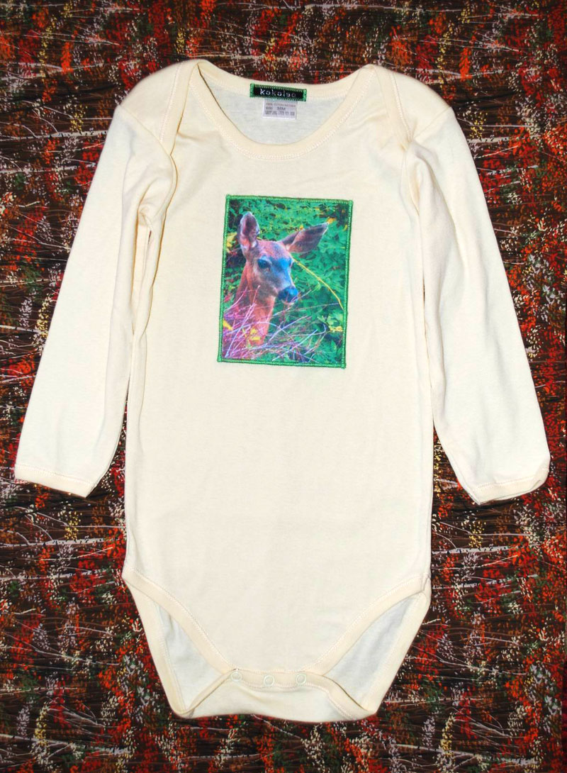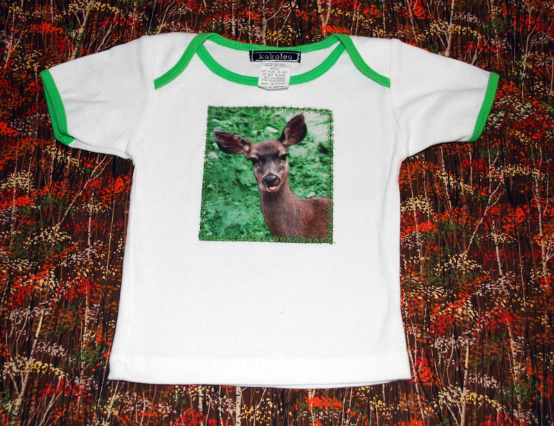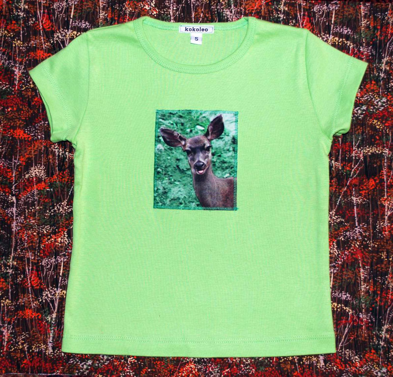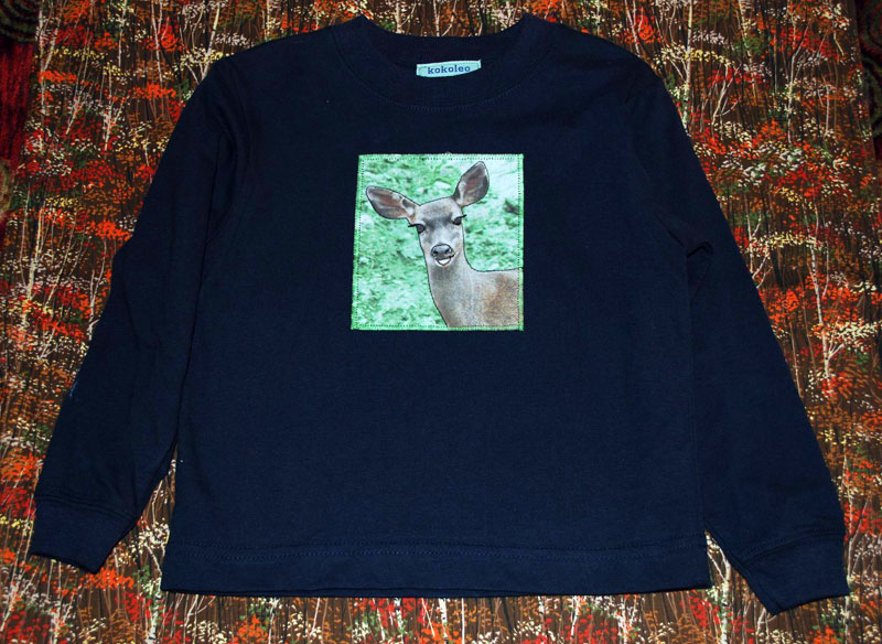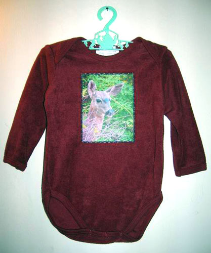 Images are photo transferred onto cotton fabric, then bonded and stitched to the shirts.