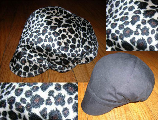 Two hats in one! This reversible hat has a velvety leopard print on one side and black fabric on the other, It is machine washable. It stretches from 15-19 inches and would best fit a 6-18 month old child.