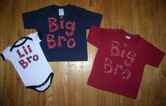 "Big bro/sis" and "lil bro/sis" shirts are $30 each.