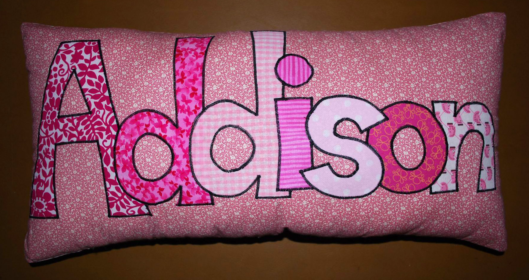 Sizes vary according to name length (average about 24 inches by 12 inches).